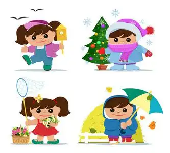 春夏秋冬儿童服装简笔画