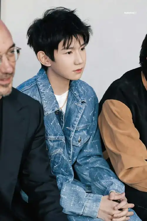 王源米兰看秀图#王源出席米兰时装周秀场图清爽蓝色牛仔外套少母行