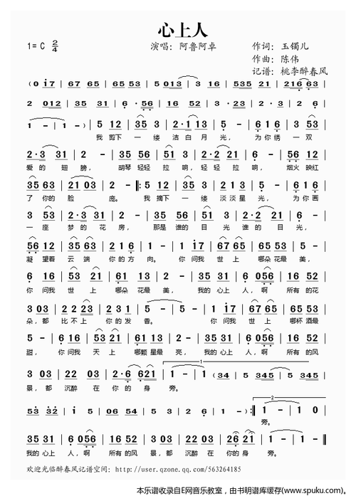 心上人_歌谱简谱_哆来咪123曲谱网