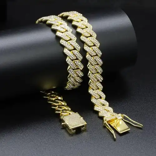 14k金18k金古巴链奢侈镶钻