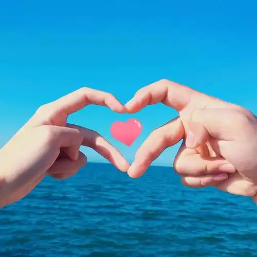 情侣比心手势图片,跪求一对手势心型的情侣头