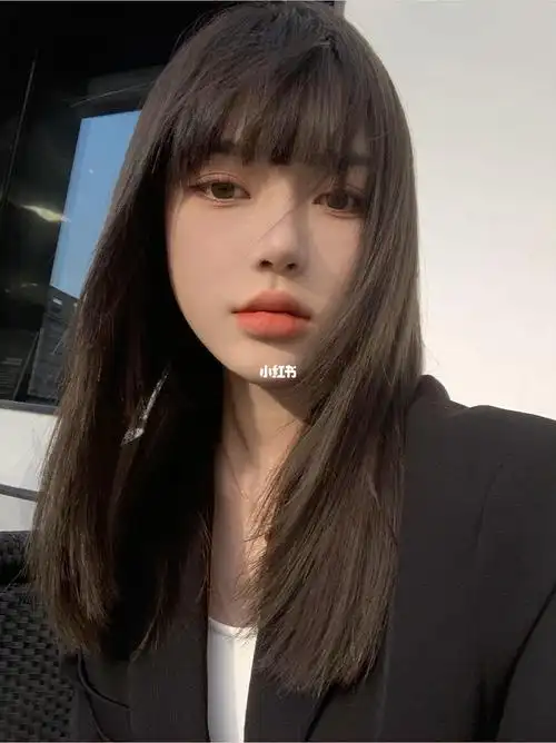 高冷范儿超a中长发,一刀切很酷,搭配上同款漫画刘海,发型刘海搭配