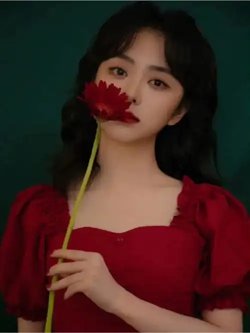 谭松韵身穿大红色泡泡袖短裙 复古优雅宛如可爱洋娃娃