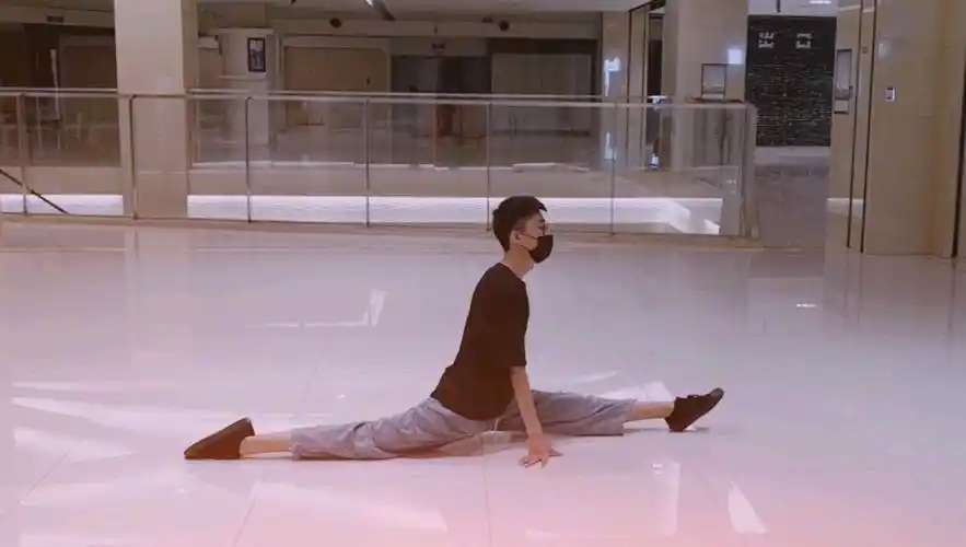 男生舞蹈室练习一字马