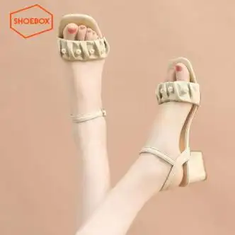 夏品丽凉鞋女2024新款夏季一字带仙女风褶皱两穿女鞋珍珠百搭凉拖鞋女