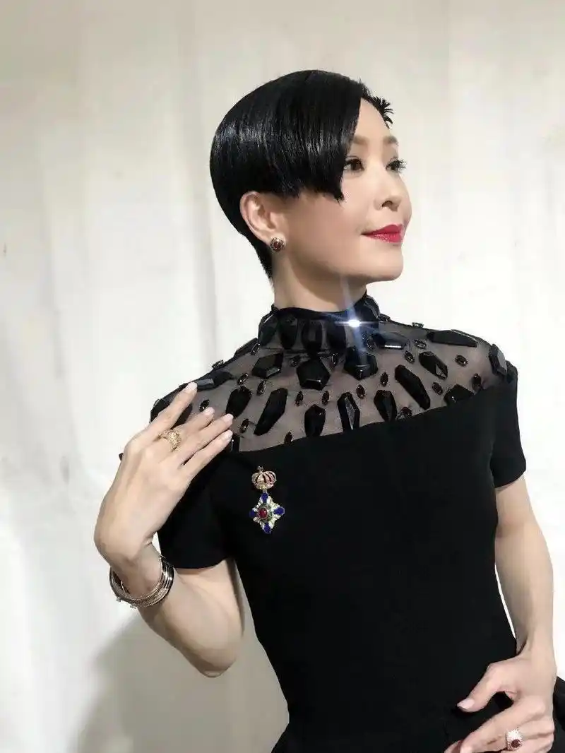原创伍咏薇魅力不减当年!三七分短发配黑色连衣裙端庄大气,性感优雅