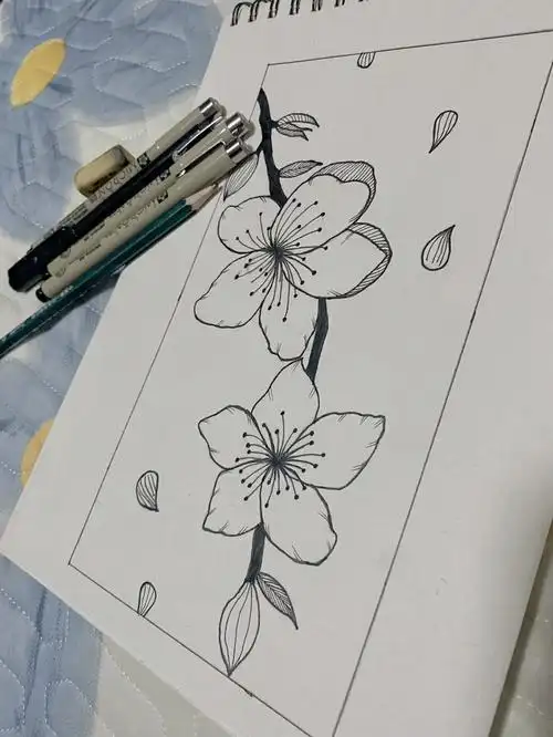 钢笔如何画桃花线稿分解教程