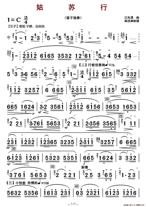 姑苏行(笛子谱)_简谱_搜谱网