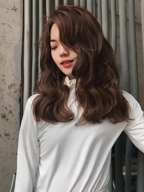 女生中长发方脸烫发图片(3)_方脸发型_西子美发网