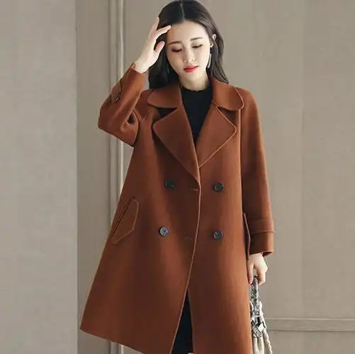 加厚中长款毛呢外套女2021秋冬新款小个子韩版修身气质呢子大衣混咖色