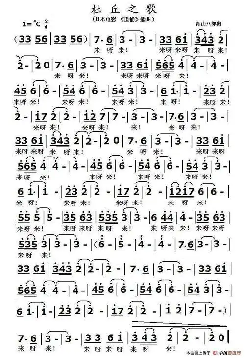 杜秋之歌(《追捕》主题曲) 歌谱简谱网