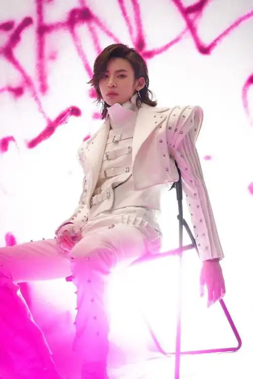 小鬼王琳凯粉黄豹纹夹克时尚酷帅写真图片