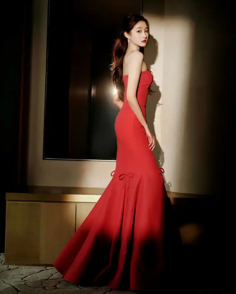 关晓彤红色纱裙