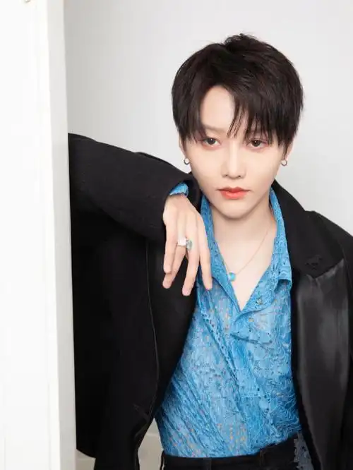 刘雨昕最新照片丨蓝色廓形西装外套搭配阔腿裤,内搭同色系法式衬衫