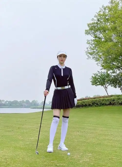 董璇穿运动裙打高尔夫活力满满