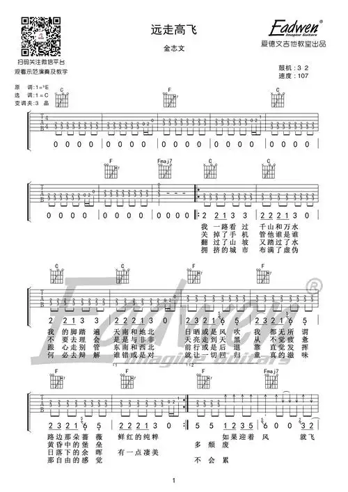 远走高飞吉他谱_金志文_c调弹唱六线谱_生产队上传