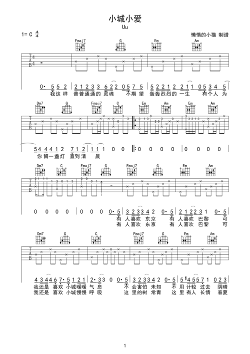 uu《小城小爱》吉他谱_c调吉他弹唱谱第1张