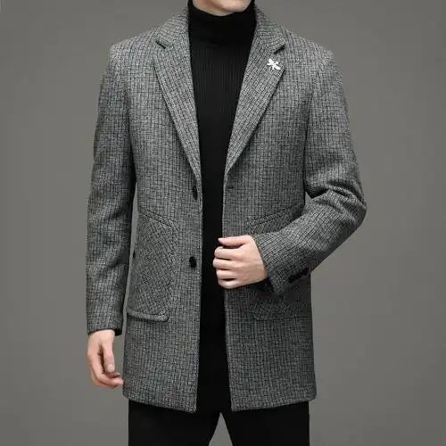呢大衣男修身帅气呢子外套男男士保暖百搭舒适显瘦男式上衣驼色加棉xl