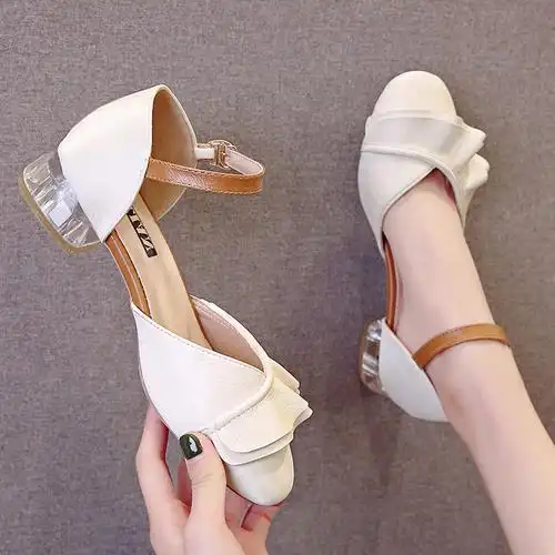 鞋子 淘宝 优惠券 淘宝 新款露趾罗马凉鞋女夏2020中跟粗跟学生优惠券
