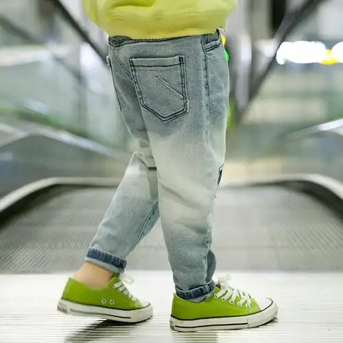 莱抱抱2020春季新品韩国童装韩版男女童怀旧款膝盖补丁萝卜牛仔裤