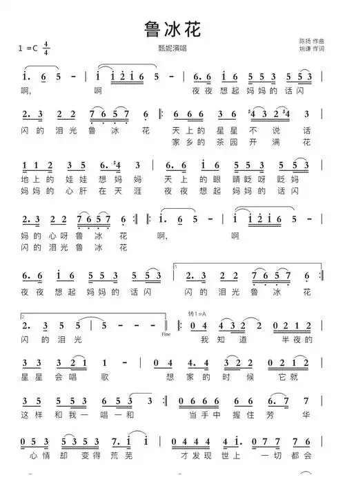 简谱鲁冰花_儿歌鲁冰花钢琴简谱