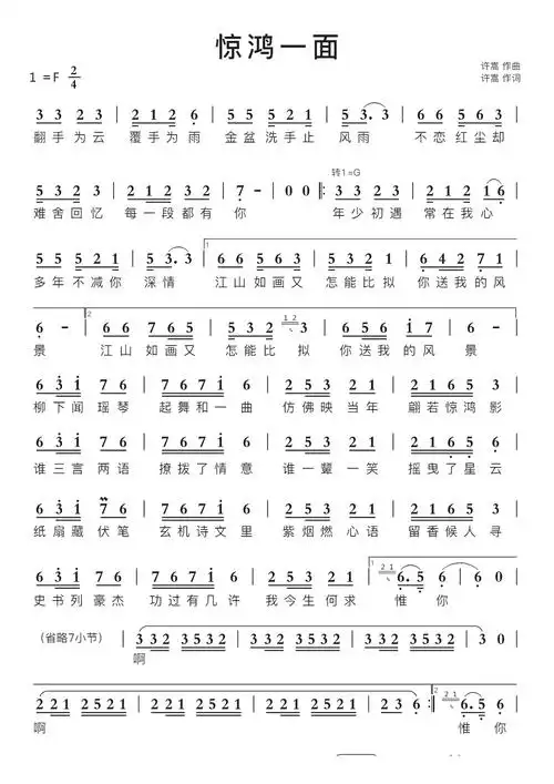 惊鸿一面 简谱
