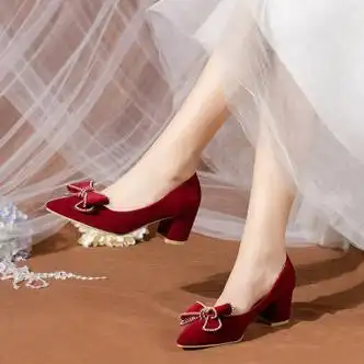 坠倾婚鞋女新娘鞋不累花朵结婚鞋禾秀婚纱两穿红色高跟鞋小众感3cm酒