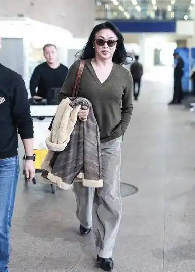 金星机场造型太霸气,穿v领针织衫配阔腿裤气场强大,却少了女人味