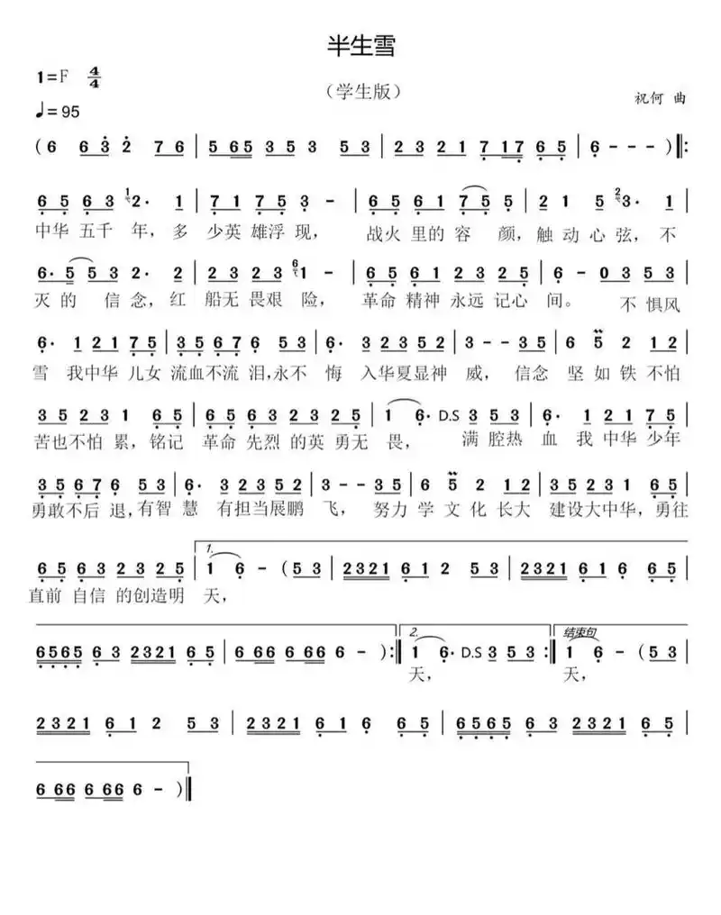 Warning: session_start(): Failed to read session data: files (path: ) in /www/wwwroot/www.nnbbaa.com/config.php on line 2 《半生雪》学生版 f调 简谱 - 能吧图片库