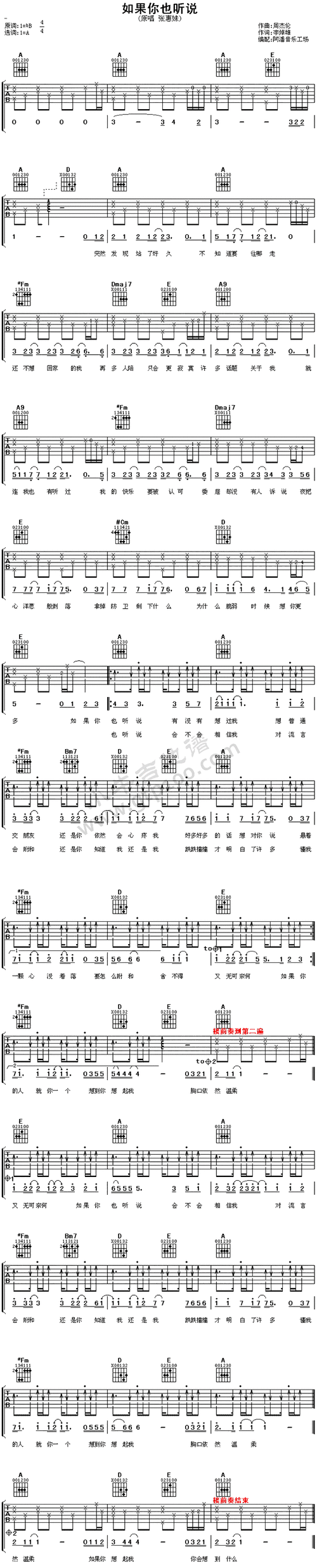 如果你也听说-张惠妹-图片吉他谱-1
