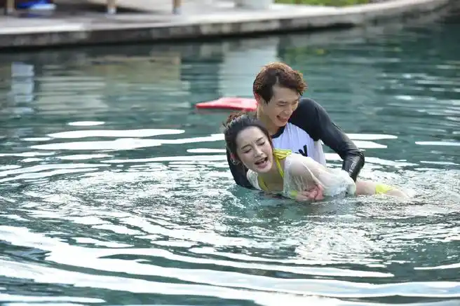 李沁和魏大勋在《我们相爱吧》中的泳池戏水剧照,到底是甜蜜还是过于