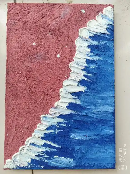 工具:丹可林油画棒@丹可林过程:先平涂一些紫色,粉色,下面颜色深可以