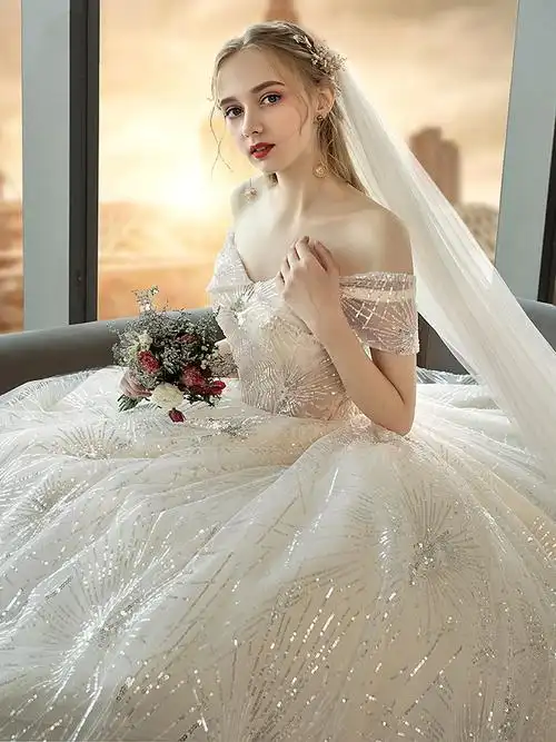 葛澜新娘头纱韩式结婚拖尾婚礼闪闪亮片抖音超长大拖尾