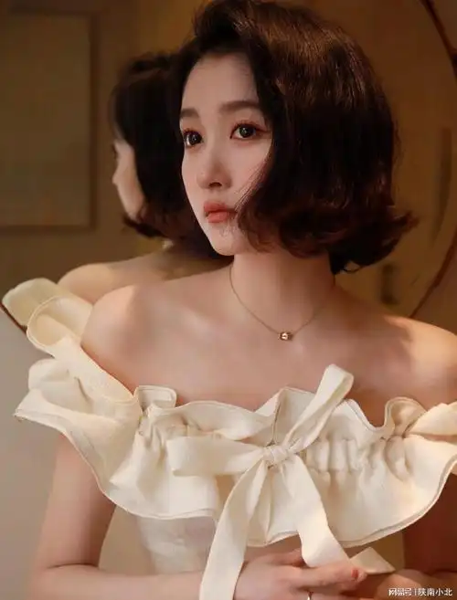 关晓彤今日直播造型,白色露肩花朵裙搭配外翘短发,青春靓丽,俏皮可爱!