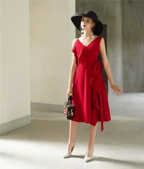 23岁关晓彤发育太快穿红色吊带裙走猫步好性感手长到膝盖太夸张
