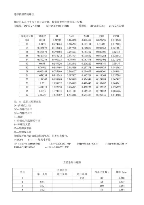 螺纹加工尺寸对照表