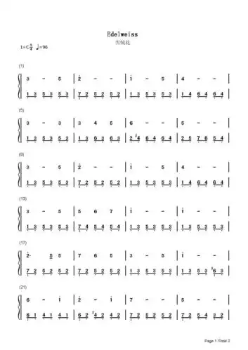 雪绒花 c大调 钢琴双手简谱 钢琴简谱