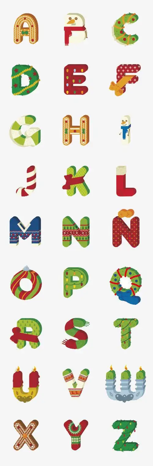 26个圣诞英文字母设计矢量图_矢量字体_懒人图库
