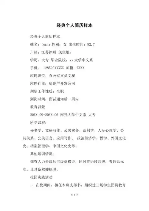 文档下载 所有分类 工作范文 其它 > 李双双个人简历获得计算机一级