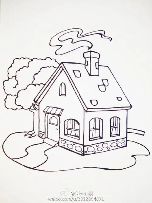 少儿美术附线稿创意房子儿童画6岁以上