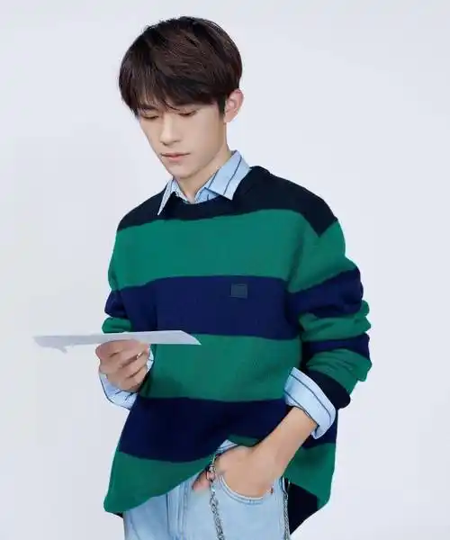 原创易烊千玺写真照曝光穿衬衫配绿色针织衫清新活力似大学校草