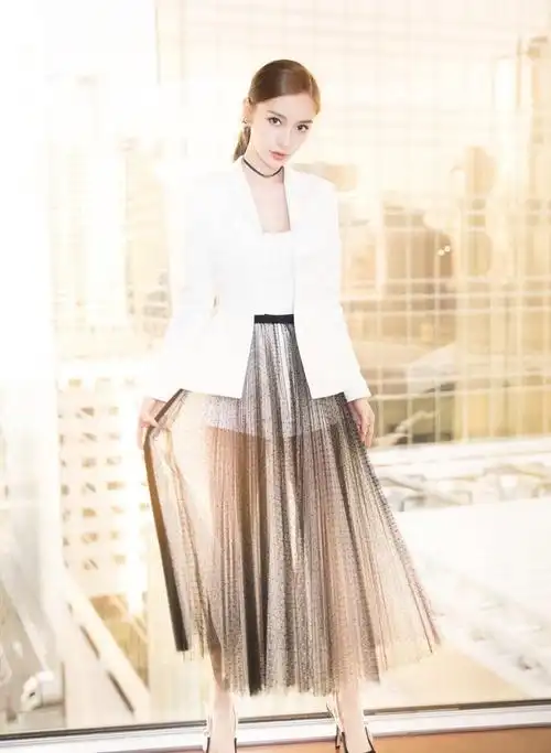 yoka向尚看##yoka直击2019时装周#今天,@angelababy身穿白色卫衣痛铑