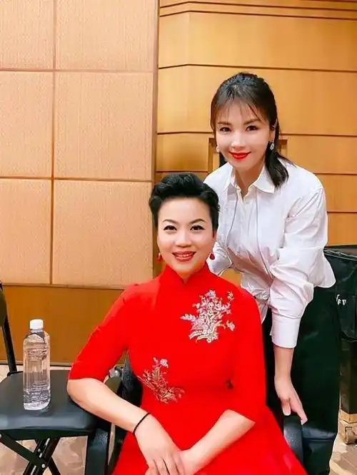 77岁李谷一同框54岁张也,穿红裙优雅大方,颜值气质一点不输小辈