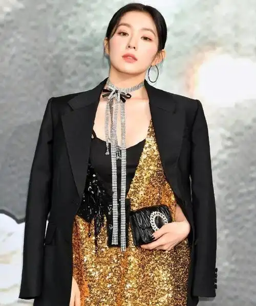 red velvet的irene裴珠泫黑色西装露肩礼服黑衣大全