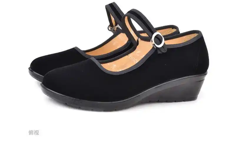 高跟老北京布鞋女软底黑布鞋松糕酒店工作鞋礼仪单鞋妈妈舞鞋黑色34