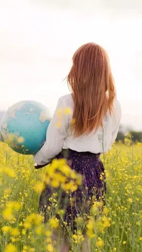 背影女孩花卉意境波斯菊拥抱属于我的未来壁纸