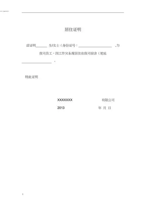 单位宿舍居住证明pdf1页