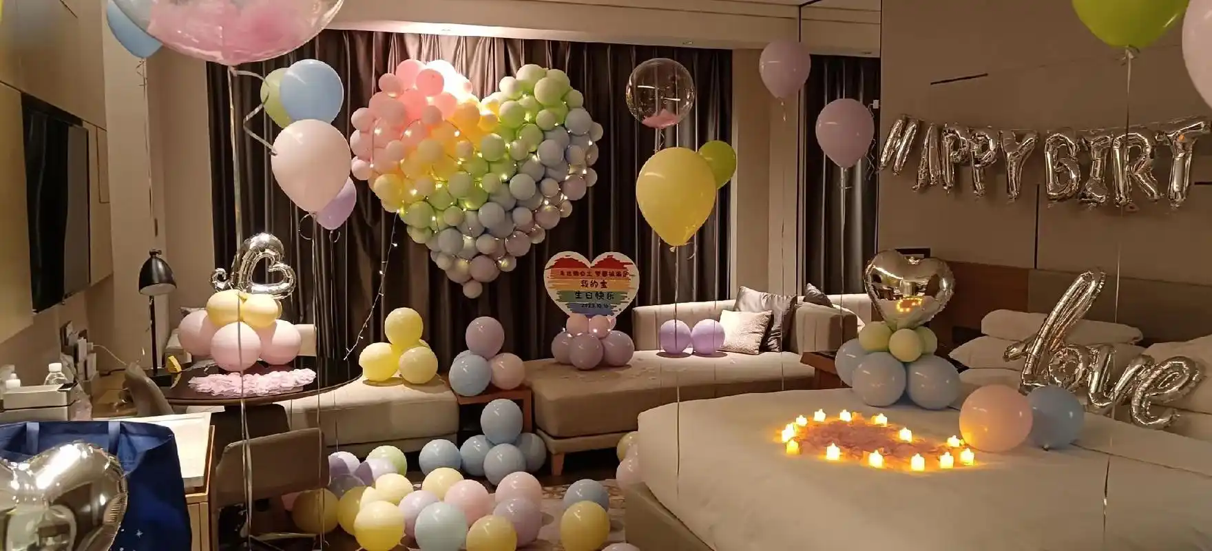 酒店房间气球生日订婚纪念日告白主题派对策划上门布置花瓣