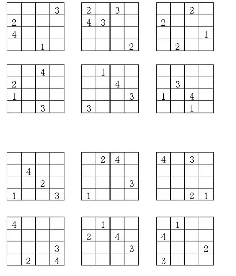 数独四宫格35岁儿童练习题简单版