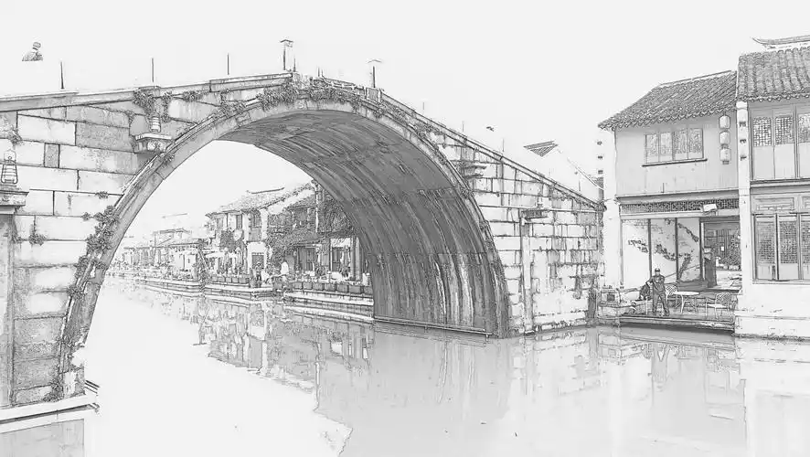 素描风景小桥流水人家